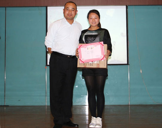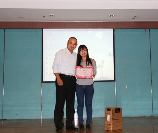 支持獎”得主陳亭(右)與劉學強劉副總(左)合影