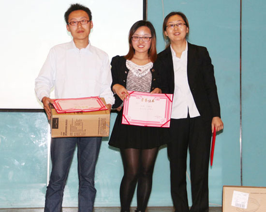 支持獎”得主陳亭(右)與劉學強劉副總(左)合影